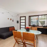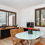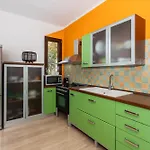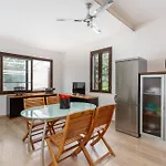 Toto ubytování má také kompletní kuchyni a výhled na zahradu.